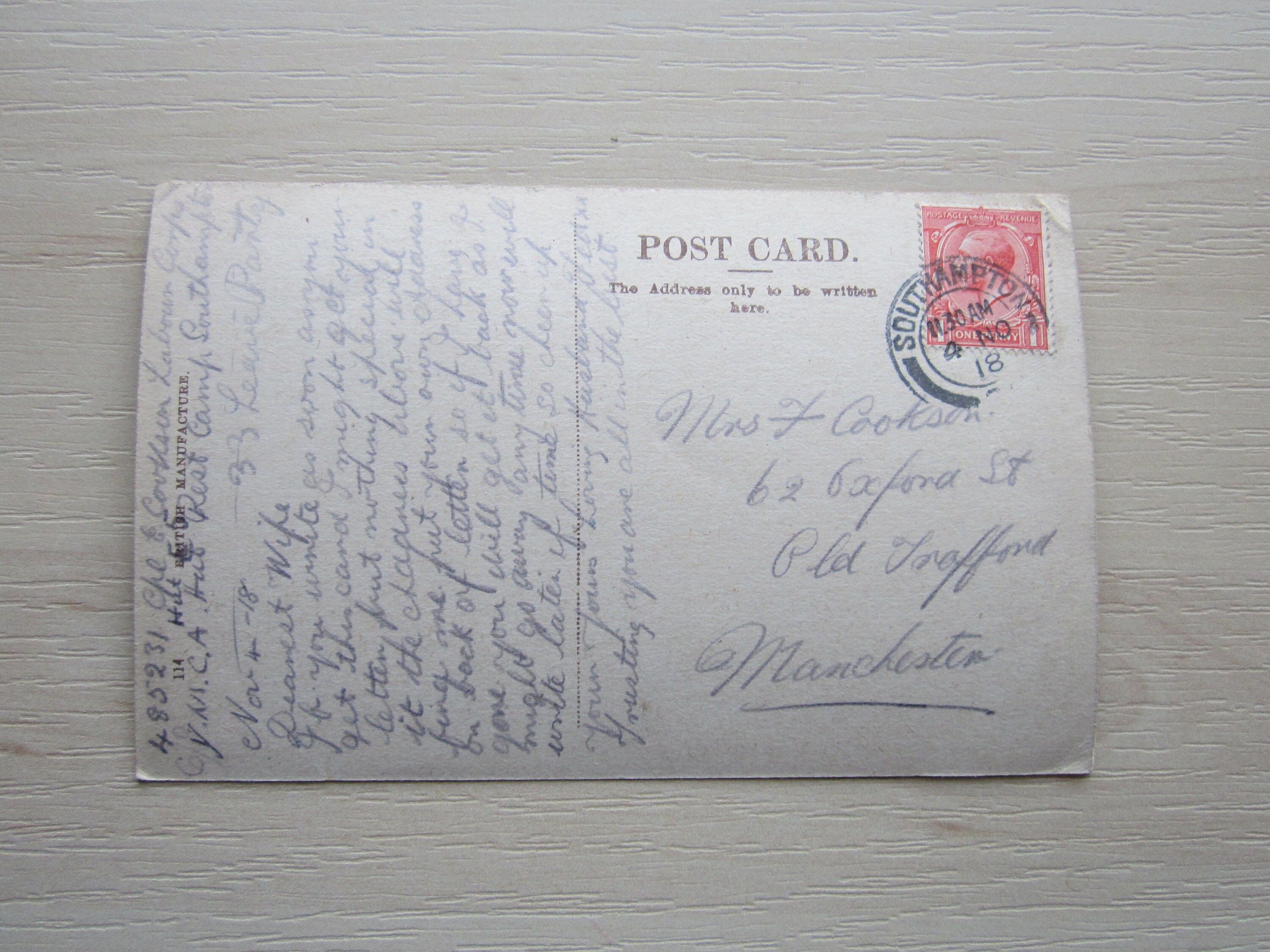 Postmarked: 4 November 1918
